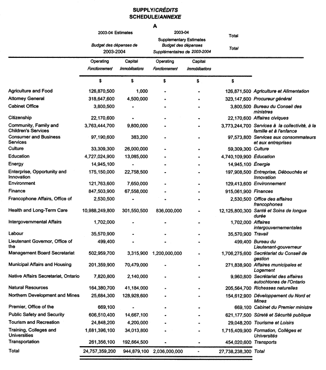 Supply Act, 2003, S.O. 2003, c. 10 - Bill 28, Supply Act, 2003, S.O. 2003, c. 10