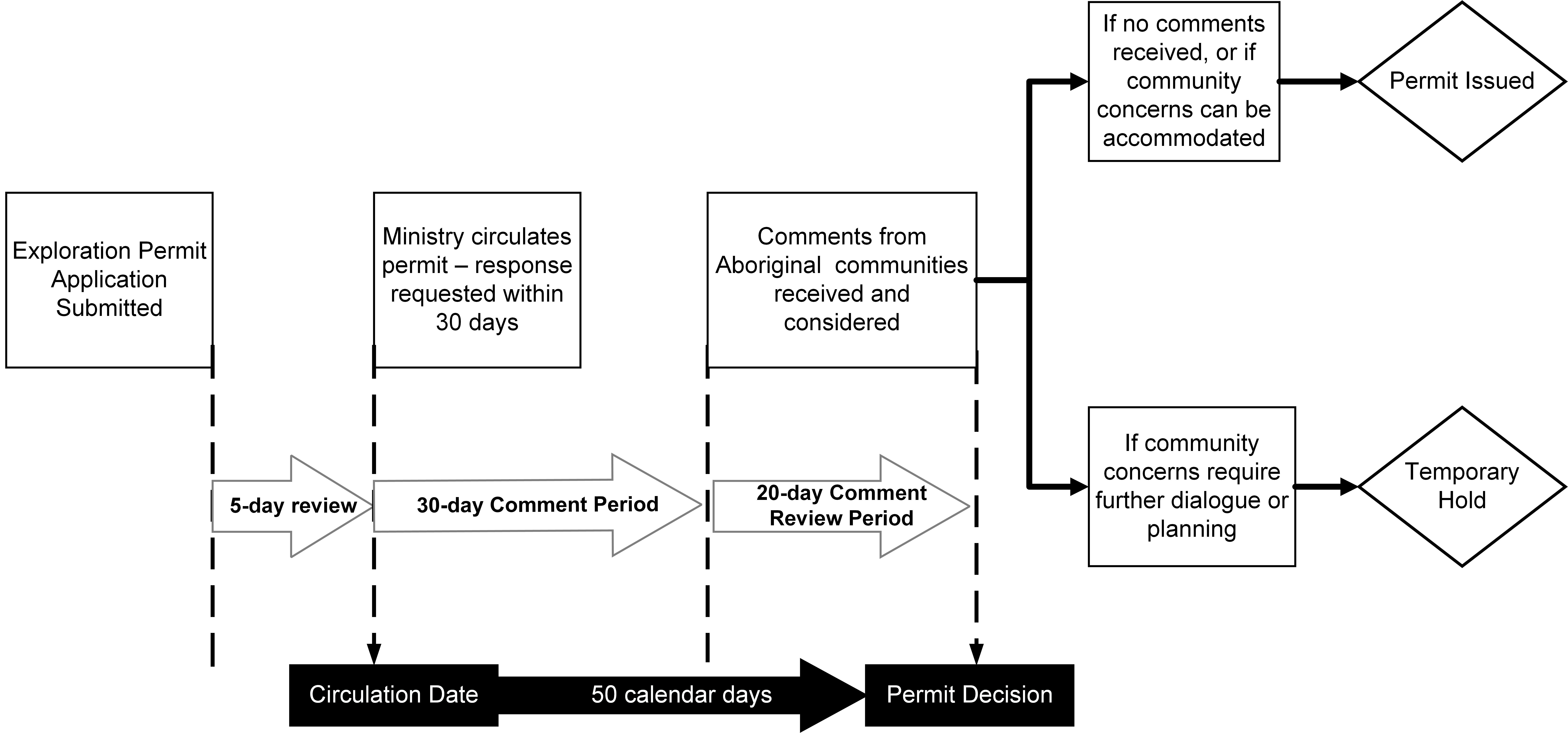 - communities are asked to inform the ministry of concerns they may have about potential adverse effects to Aboriginal or treaty rights within 30 days of circulating the Exploration Permit Application