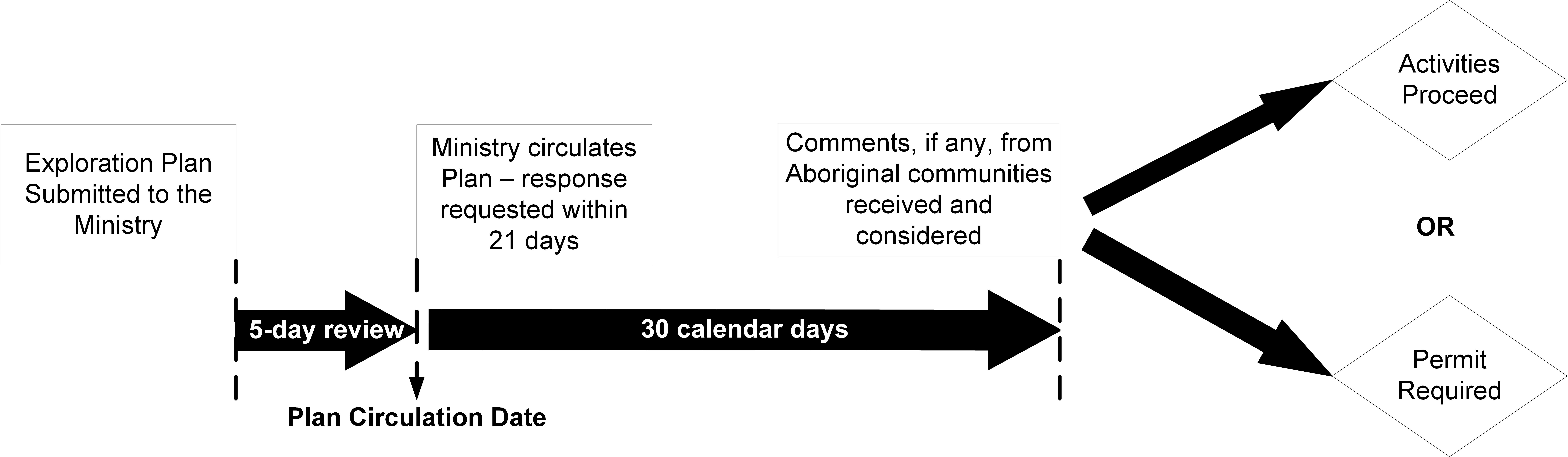 - the ministry will identify the Aboriginal communities to be consulted about the plan no later than five days after receiving the submitted Exploration Plan (see Community identification section)