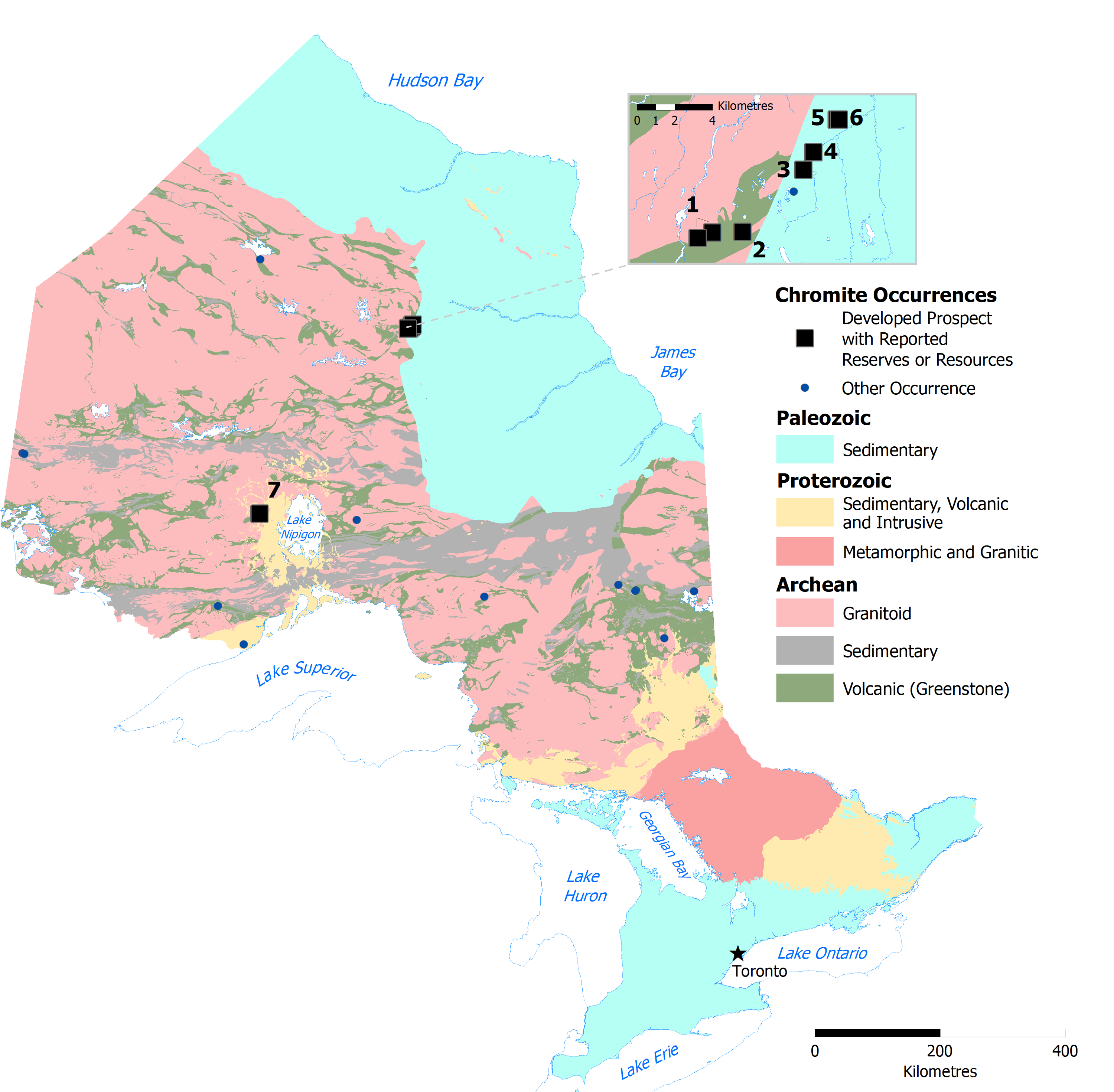 The Ring of Fire, in the Far North of Ontario, has the second largest chromite deposit globally in terms of tonnes of ore resources.